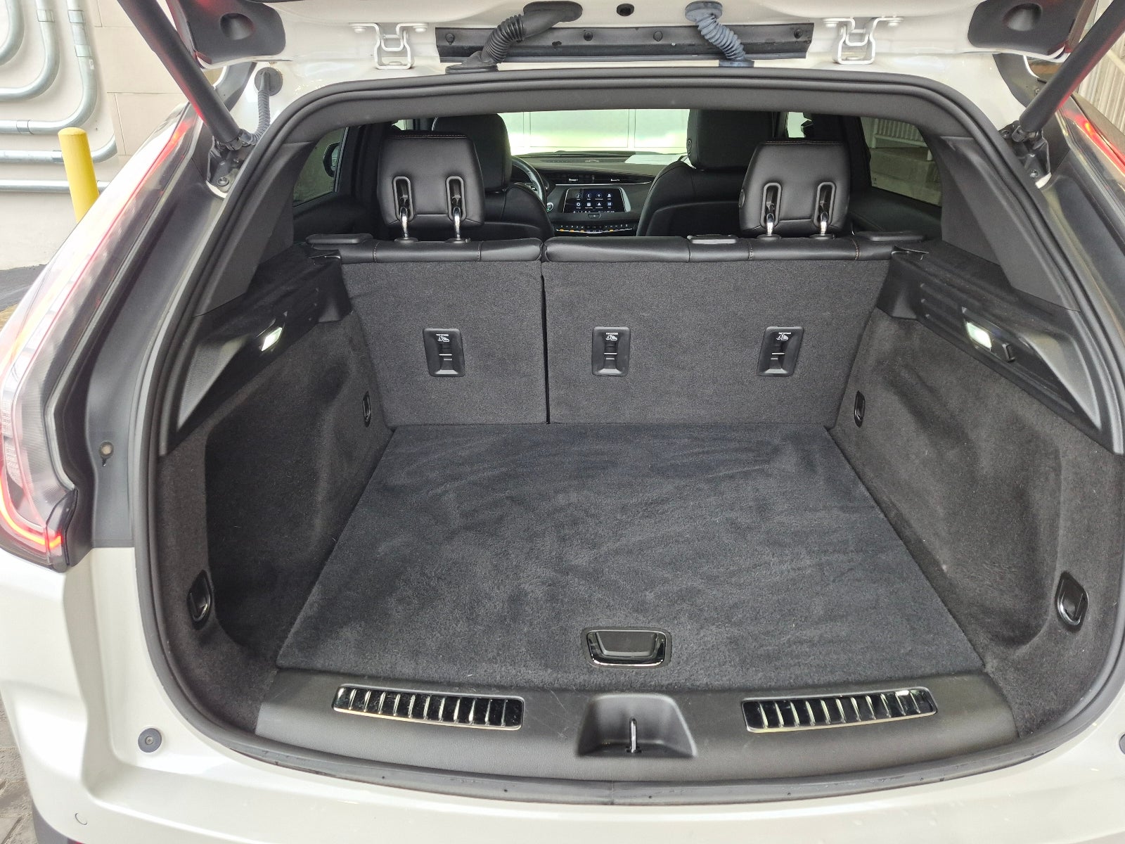 - Opens or closes when the system senses the key fob and the driver extends their foot under the left-hand side of the rear bumper over an image of the Cadillac Crest projected under the vehicle